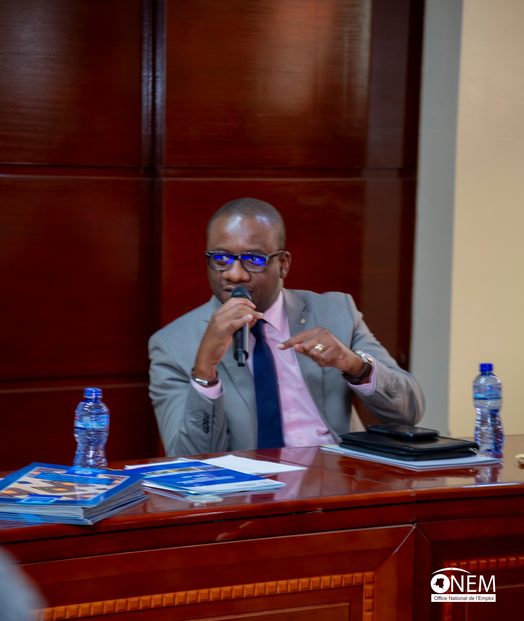 Pour sa deuxième journée de participation à la Table Ronde nationale sur l’emploi et l’entrepreneuriat des jeunes, le Directeur Général de l’Office National de l’Emploi (ONEM) Me Fanon BEYA a animé en présence du Ministre de l’Emploi et Travail, ainsi que celui de la Formation professionnelle, l’atelier majeur axé sur trois thématiques essentielles : l’emploi, la formation et l’insertion professionnelle des jeunes.