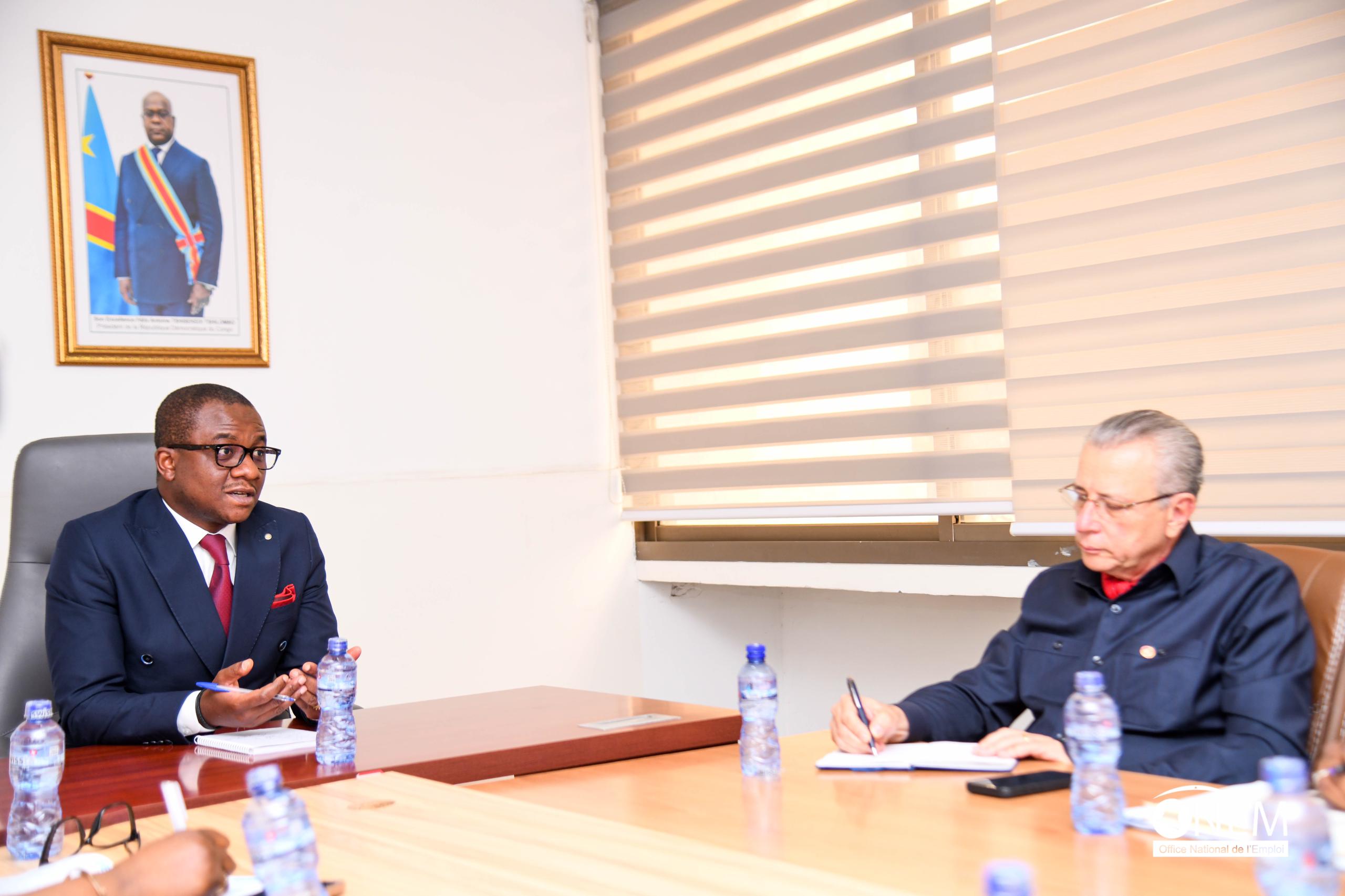 Le Directeur Général de l’Office National de l’Emploi (ONEM), Me Fanon Beya, a reçu l’honorable Jean Bamanisa Saïdi, Président du Club BTP & CMA.